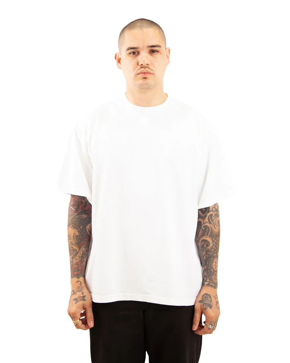 These tees are treated through our famous dyeing process to our regular garment dyed shirts. Features include an exposed neck rib cover stitch and reversed shoulder tape.
